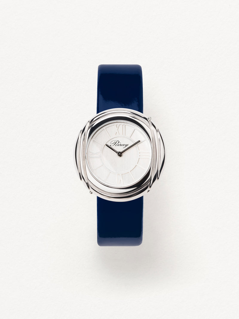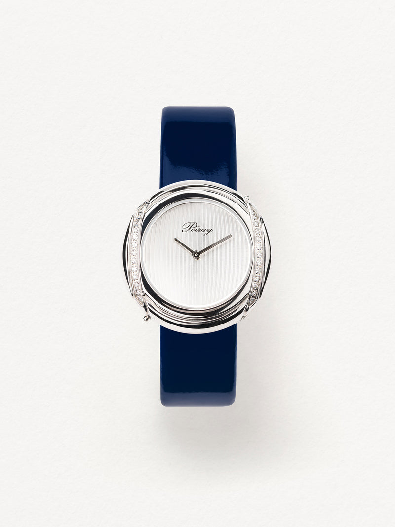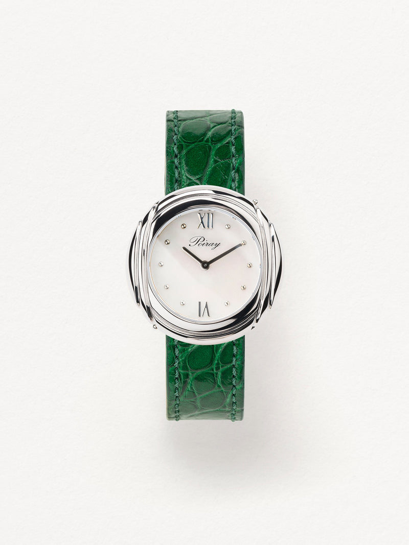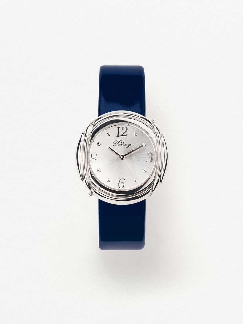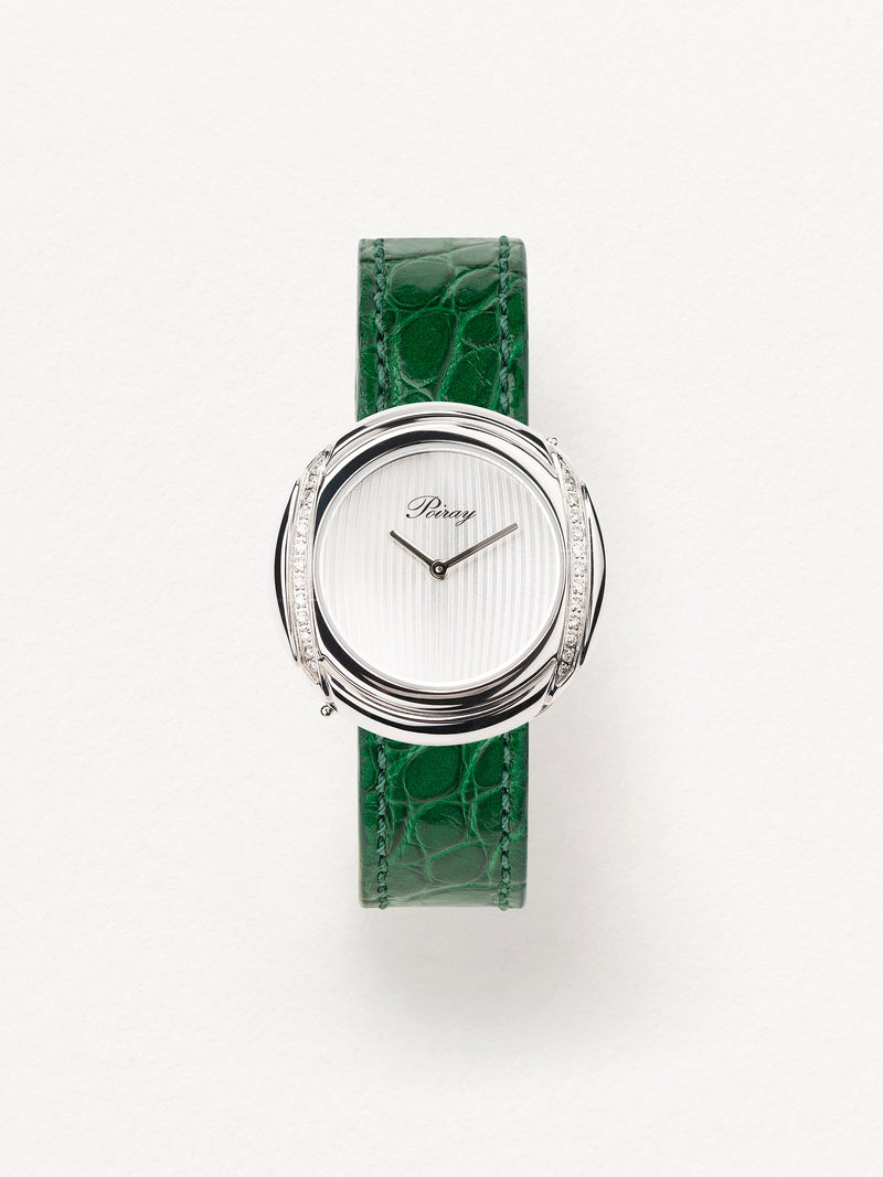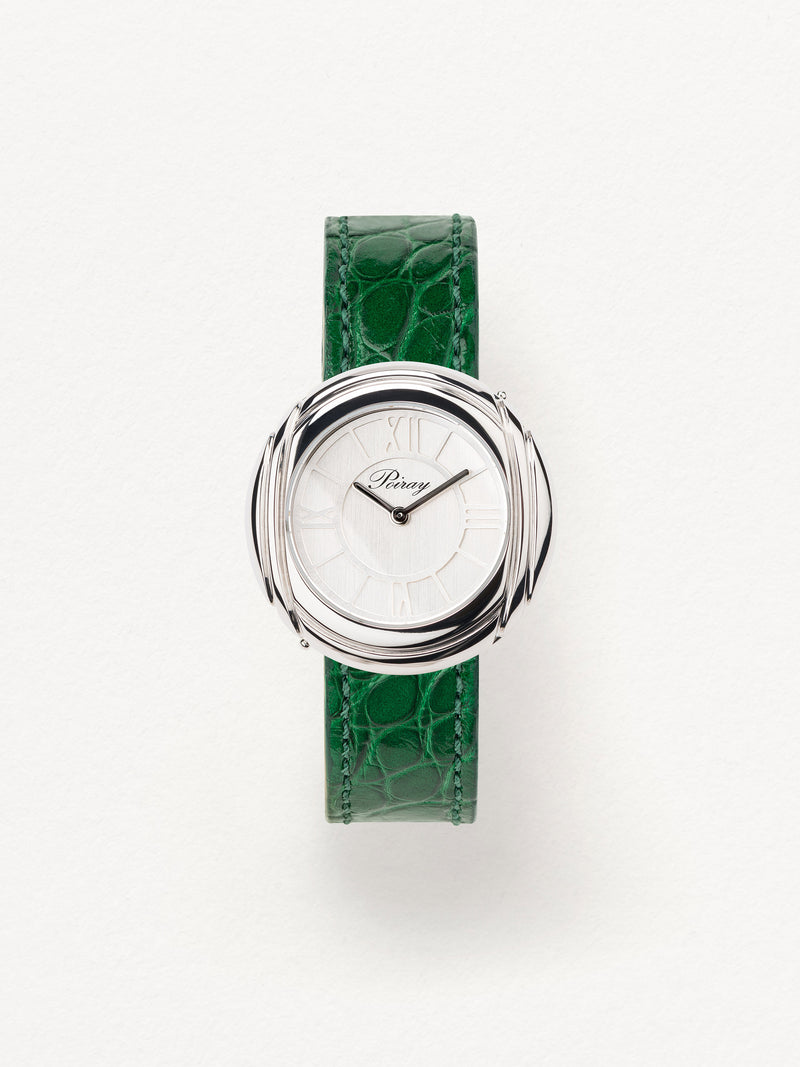 Playing with colors and materials, the Rive Droite watch, elegant and generous, changes outfit thanks to its interchangeable straps.