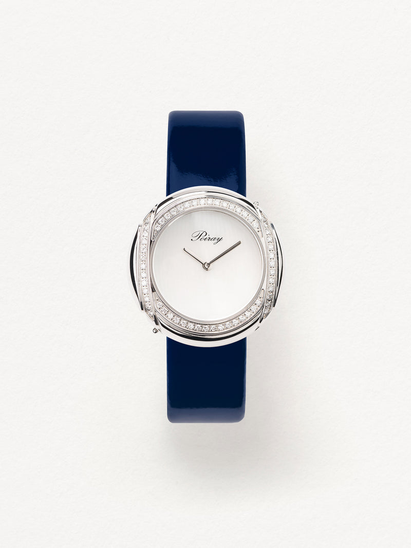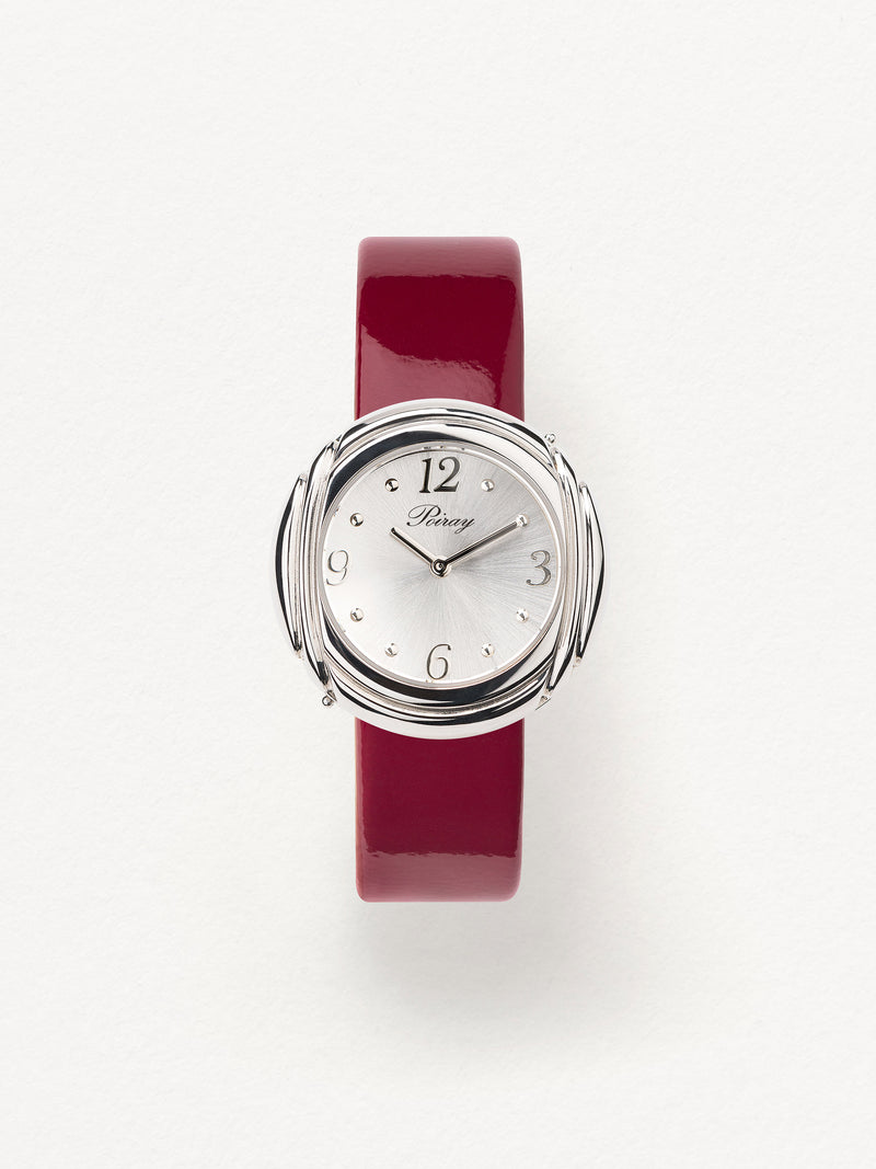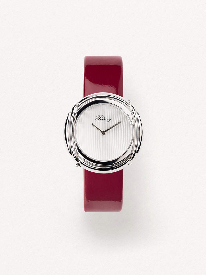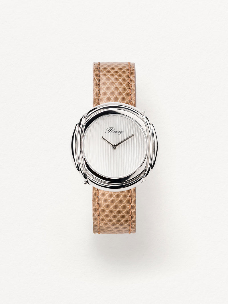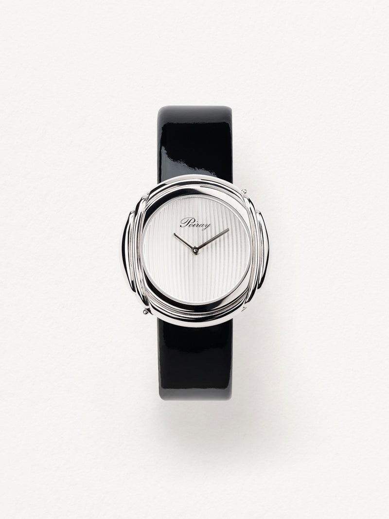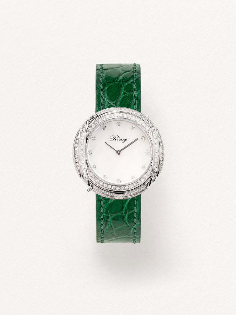 Playing with colors and materials, the Rive Droite watch, elegant and generous, changes outfit thanks to its interchangeable straps.
