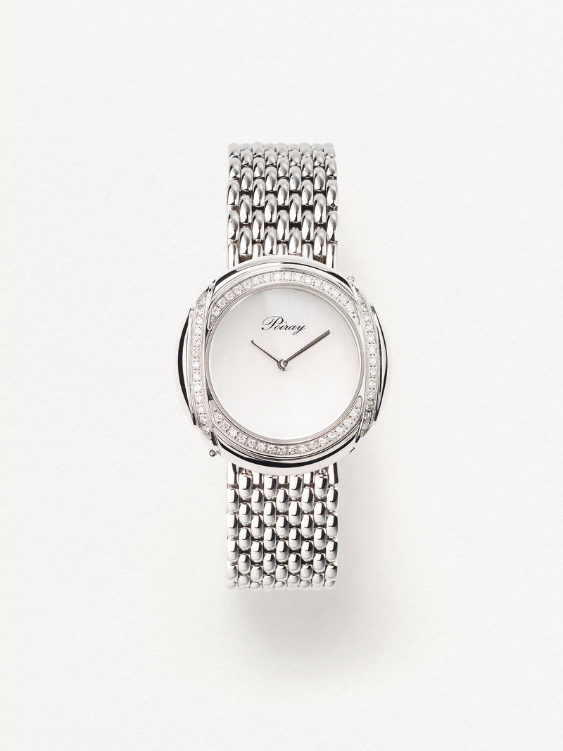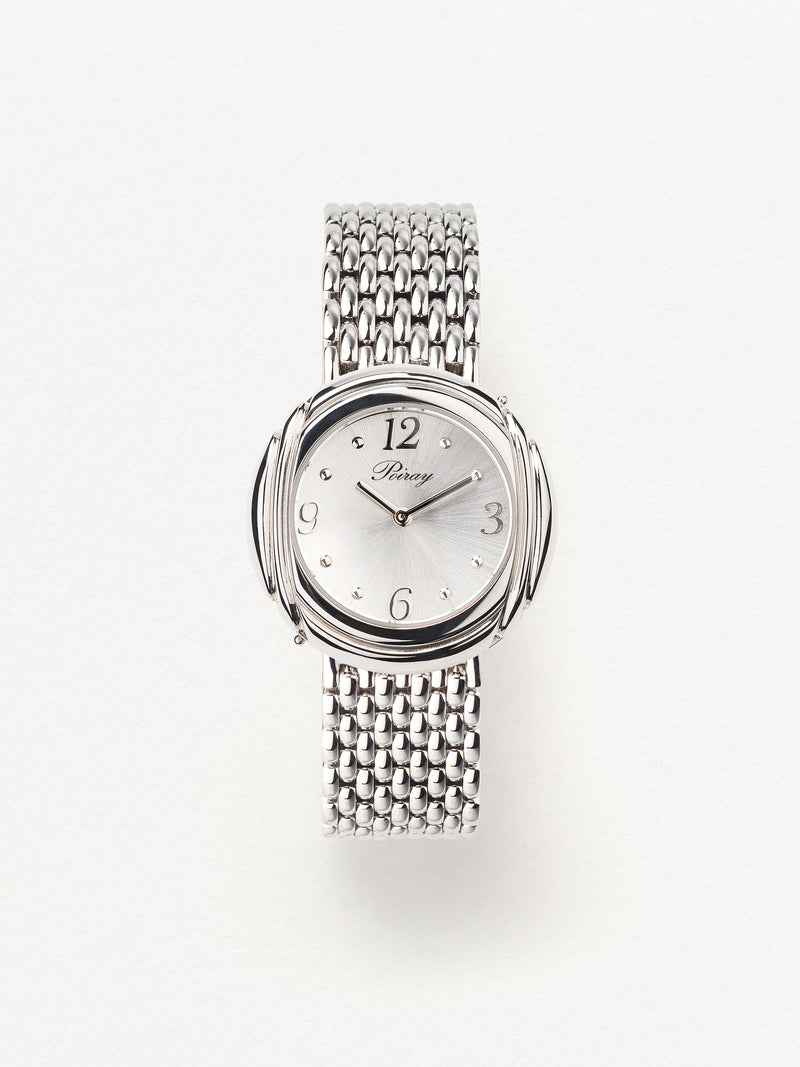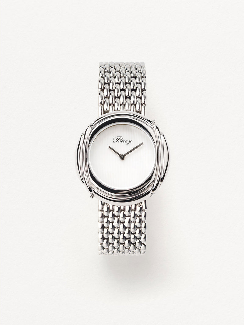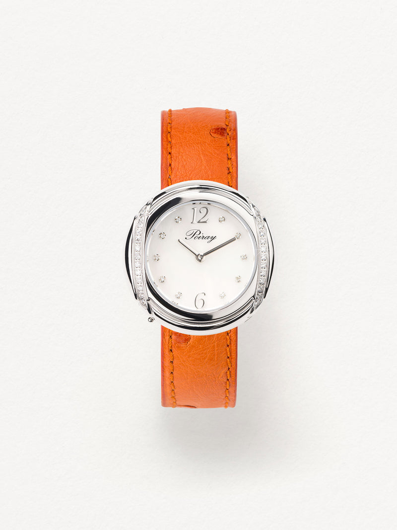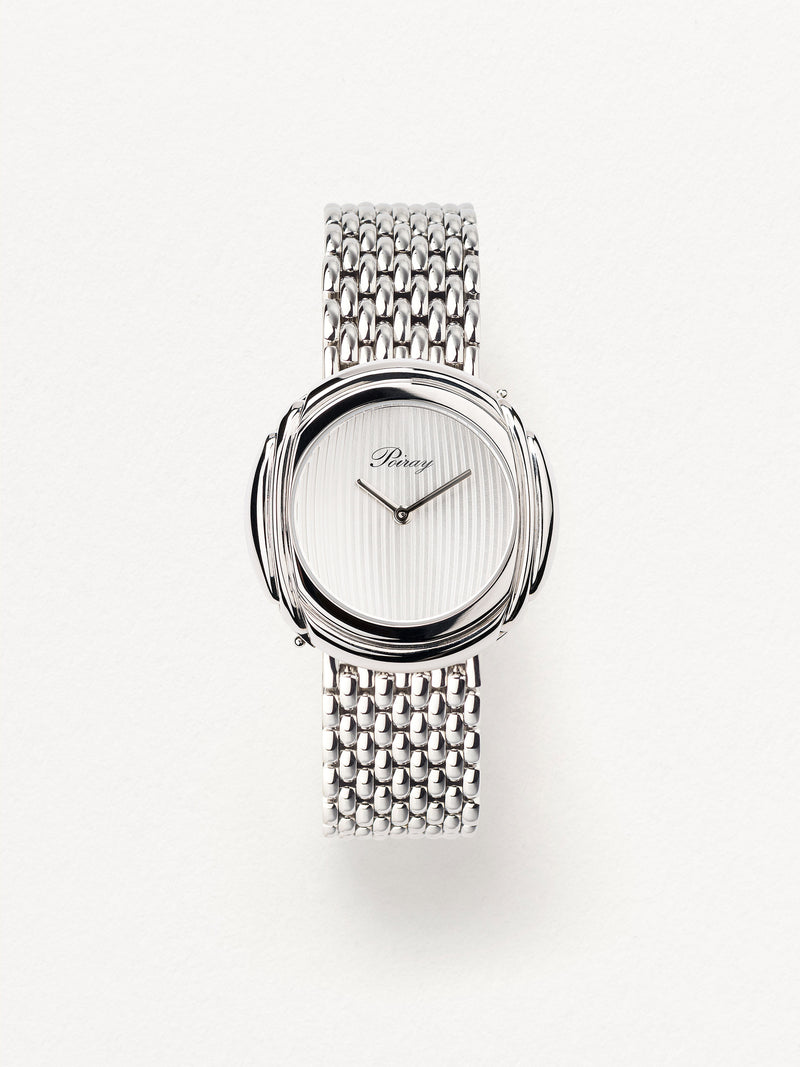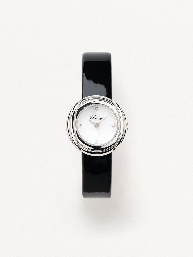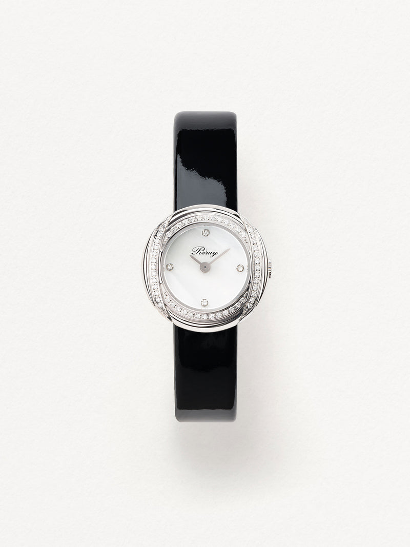Playing with colors and materials, the Rive Droite watch, elegant and generous, changes outfit thanks to its interchangeable straps.